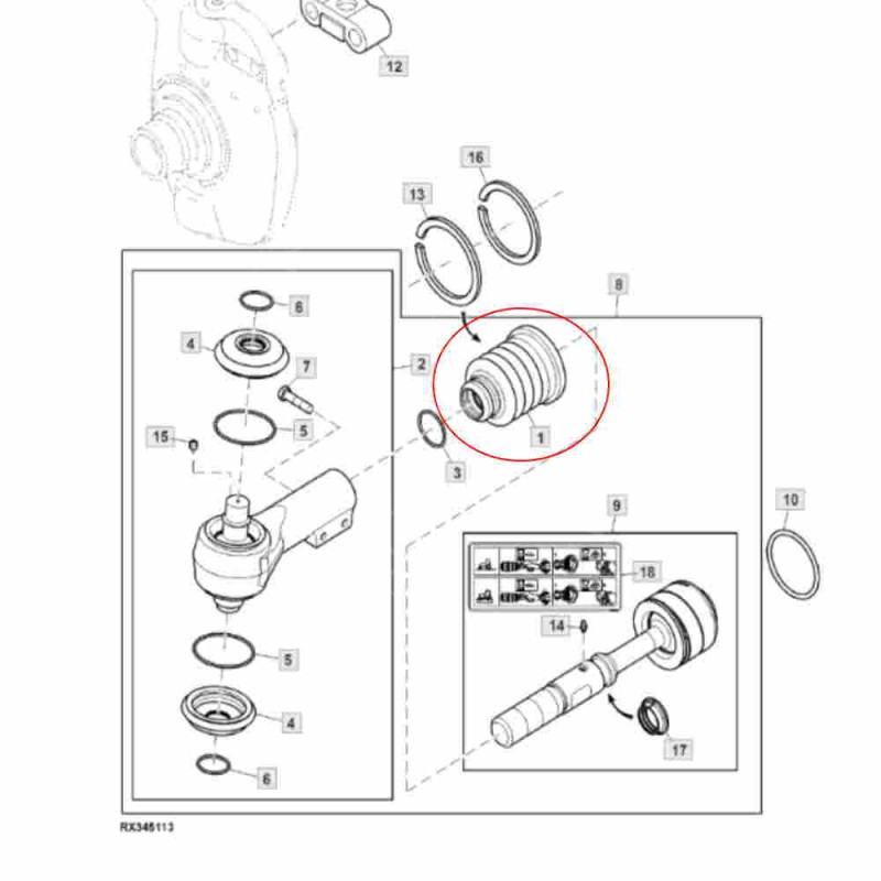UKI1657 Osłona gumowa przegubu John Deere