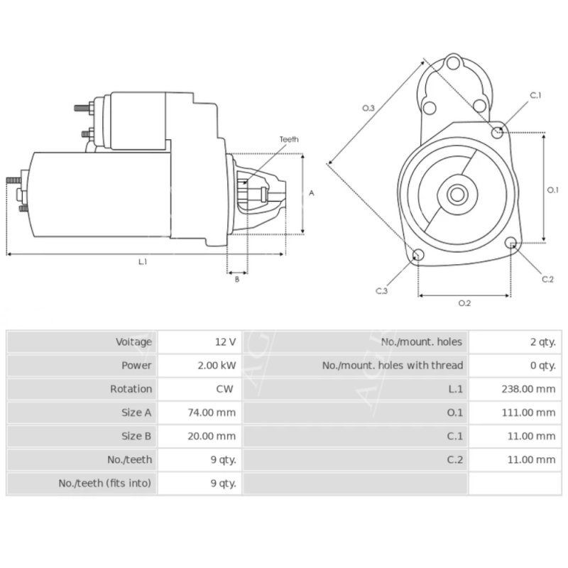 ELE2062 Anlasser 2 kW 12V