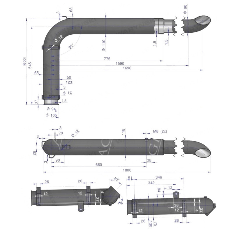 SPO3103 JD 7000 Schalldämpferkrümmer