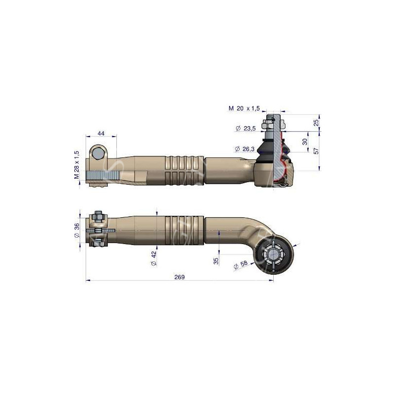A= M28x1,5 (rechts) | B = 275mm | Konus = 23,5–26,4 mm