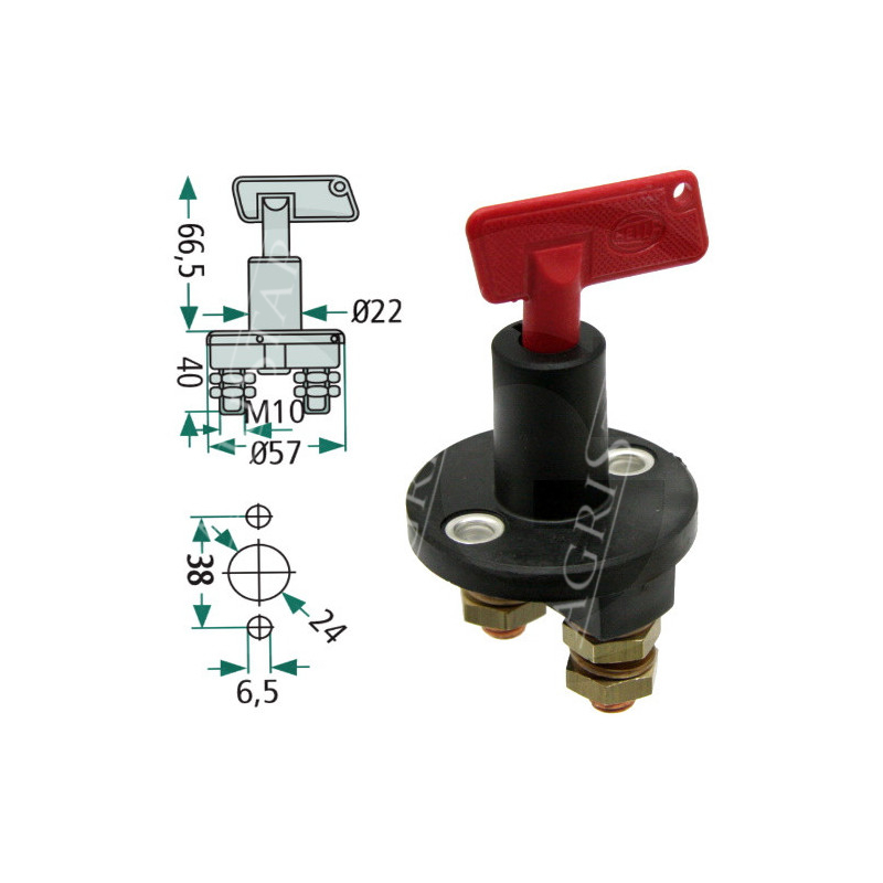 für Batterien und Zündstrom, roter Schlüssel, wahlweise Anschluss an + oder - Leitung